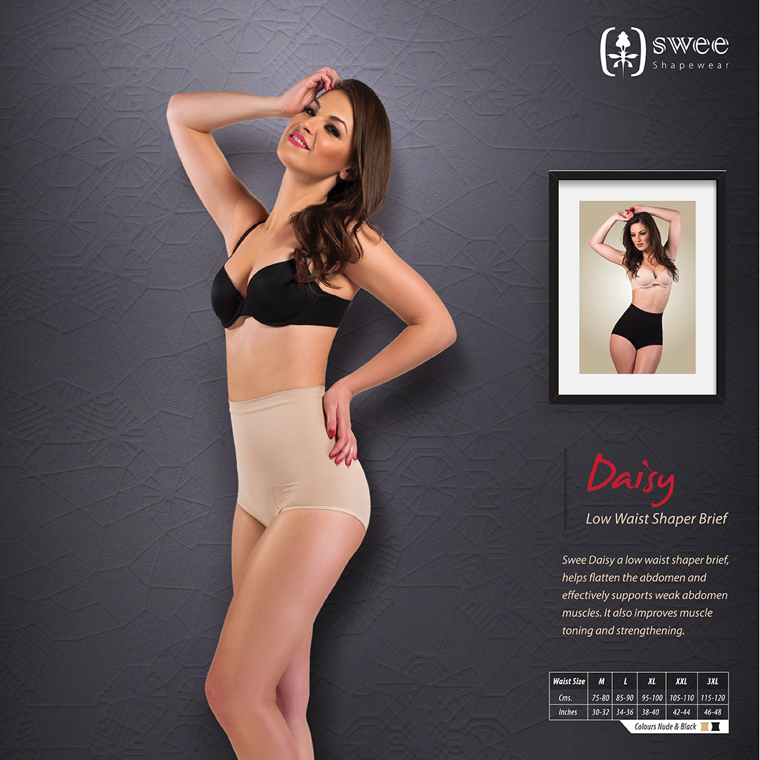 Swee Daisy a low waist shaper brief, helps flatten the abdonmen and effectively supports weak abdomen muscles. It also improves muscle toning and strengthening.